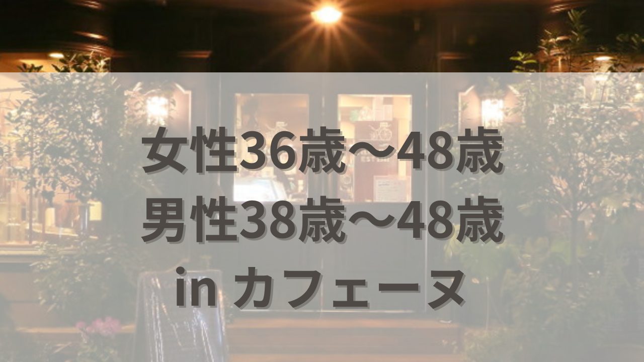 | 参加条件 | 女性:36〜48歳 パートナーを探されている方 男性:38〜48歳 パートナーを探されている方 |