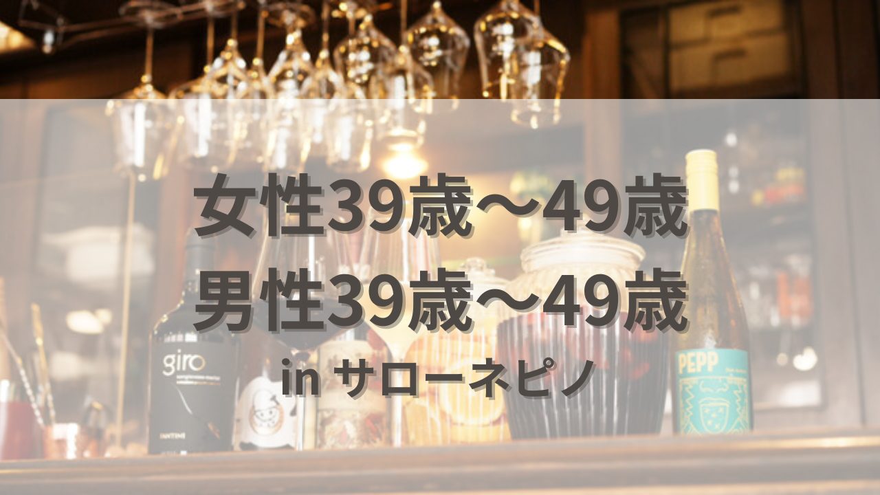 | 参加条件 | 女性:39歳〜49歳 パートナーに探されている方 男性:39歳〜49歳 パートナーを探されている方 |